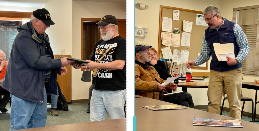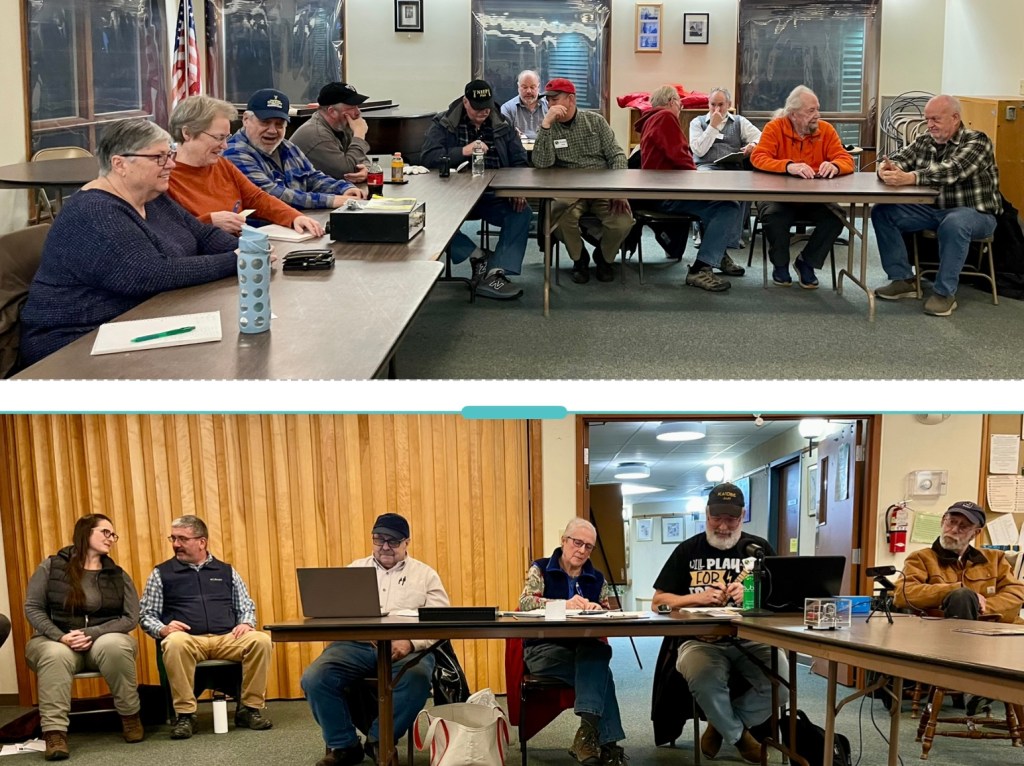 The well-attended January meeting began with introductions and a question, “Will you be participating in Winter Field Day?” One of the highlights from the business meeting was special recognition given by Andrew W1AXS, the Director of the Hancock County Emergency Management Agency, given to Evie KA1BRA for her decades of reporting data from the Hancock County EmComm Net and the EAWA Communication Net. Andrew also recognized Joan W1DLC for diligently continuing the data reporting tradition.