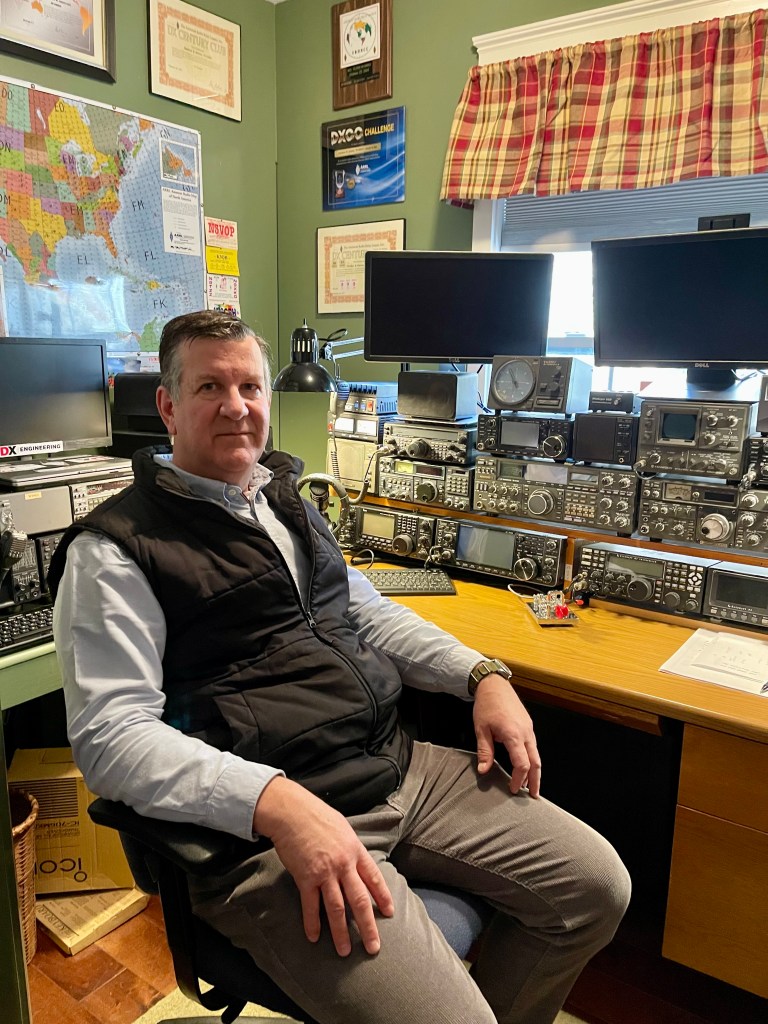 To reach his DXCC goals Matt has employed all the major modes, with most of his contacts made on phone or CW. His primary radios include an Elecraft K3, Icom IC-7300, and an Icom IC-7610. He has a tower with multiple antennas, four wire antennas, and a satellite antenna. In order to chase any DX signal quickly, he has various radios and antennas tuned to particular bands. Following a remark on the great set-up, he quickly added that most of the DXCC contacts were made with a dipole and 100 watts — sophisticated equipment is not required.