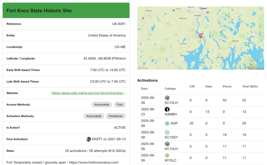EAWA members and friends will share in a club Parks On The Air (POTA) activity on Saturday, October 11th, from 10am to 1pm, at Lamoine State Park. There will likely be several stations set up using different modes, such as SSB (voice), FT8 (digital), and CW (Morse code). Everyone is invited to stop by and participate as they choose: