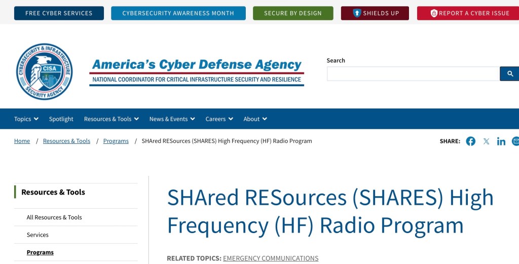 Through the SHARES program, amateur radio operators voluntarily work with national security and emergency preparedness (NS/EP) personnel to transmit critical messages when landlines and cellphones are not working.